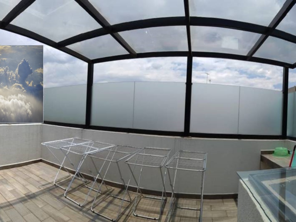 Terraza techada usada como sala de TV