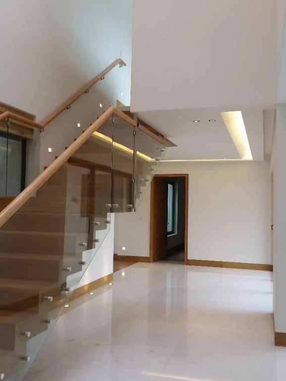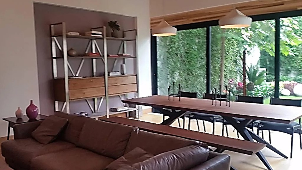 Pisos de duela, muy iluminada áreas con doble altura, calefacción, aire acondicionado, paneles solares.
