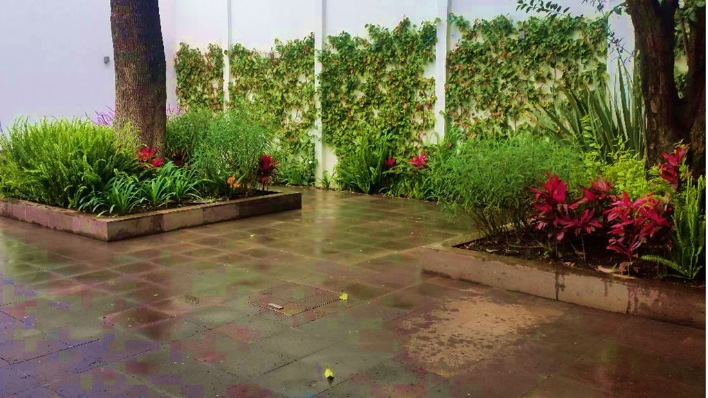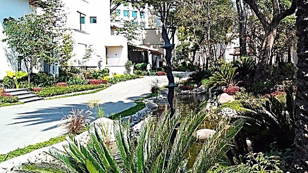 El conjunto tiene estacionamiento de visitas, caseta de vigilancia, área administrativa, área común con jardines, con estanques, cascadas e iluminaciones