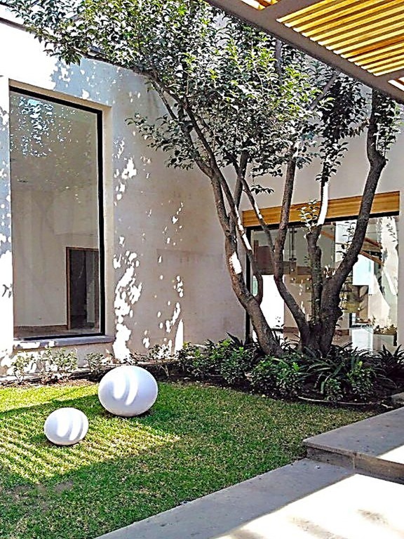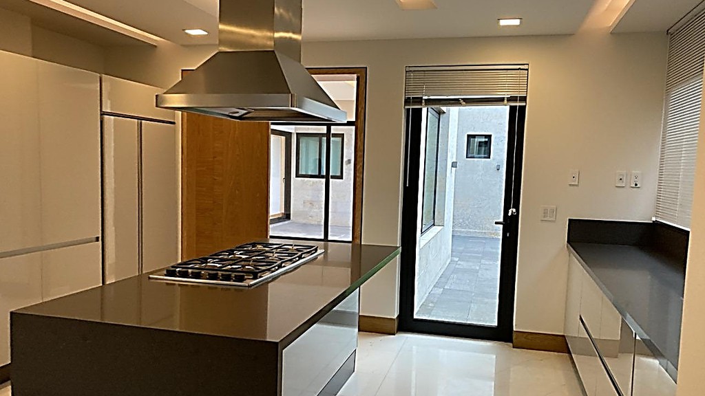 PB Vestíbulo, Medio baño, Sala con altura doble, Comedor, Cocina Amplia con gran alacena, Recámara con vestidor y baño completo y Terraza, área de servicio consistente en Cuarto de Servicio con su baño completo, Cuarto de Lavado, Bodega y Patio de Servicio, Cubo de Escalera