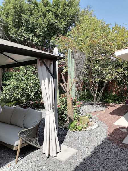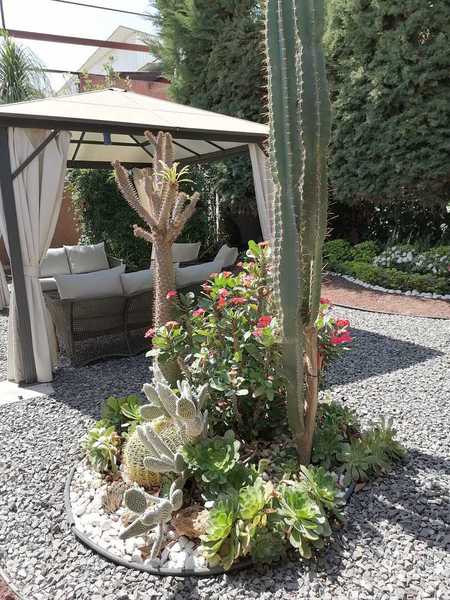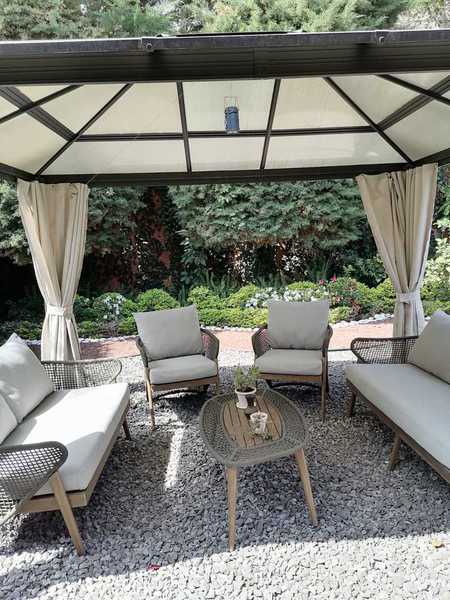 Jardín anterior y posterior, el posterior con un Gazebo, rodeado de vegetación