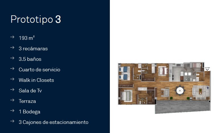 Departamentos de 125 m2 hasta 165 m2.