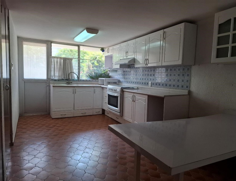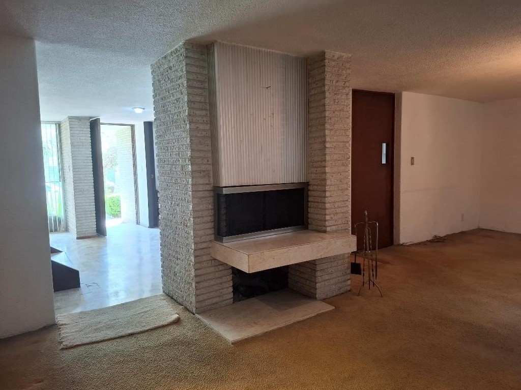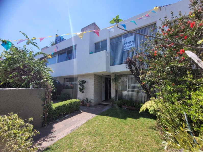 Casa con pequeño estudio en PB con medio baño, sala, comedor, chimenea y acceso al jardín, amplia cocina con desayunador y despensa.
